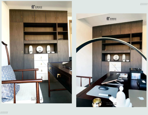 中式書房參照「圣象家居全屋定制驚鴻系列」設(shè)計(jì),鋅灰搭配鋅白完美演繹新中式風(fēng)格書房。