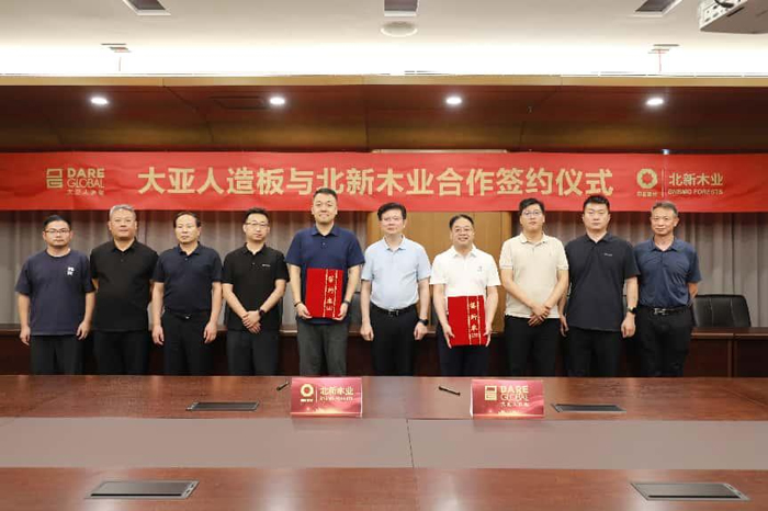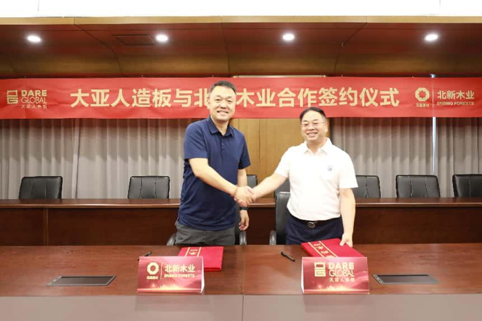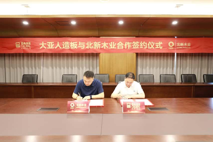 2025年6月30日,大亞人造板與央企北新木業(yè)在大亞人造板集團(tuán)有限公司總部正式簽署了竹香板戰(zhàn)略協(xié)議。雙方將聚焦竹香板研發(fā)、生產(chǎn)與市場推廣,共同打造綠色低碳家居新標(biāo)桿。此次合作標(biāo)志著中國板材行業(yè)在“雙碳”戰(zhàn)略下邁出關(guān)鍵一步,為環(huán)保板材市場注入新動(dòng)能。