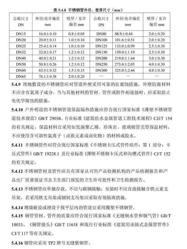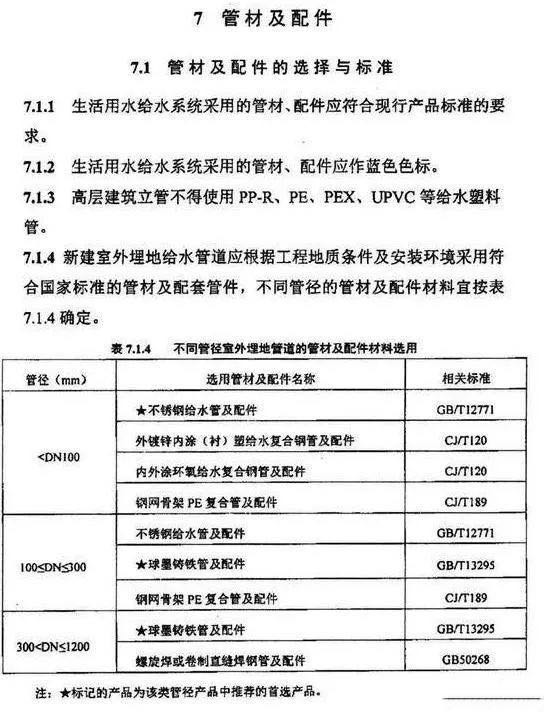 7.1.5給水立管管材及配件材料優(yōu)先選用不銹鋼水管及配件。